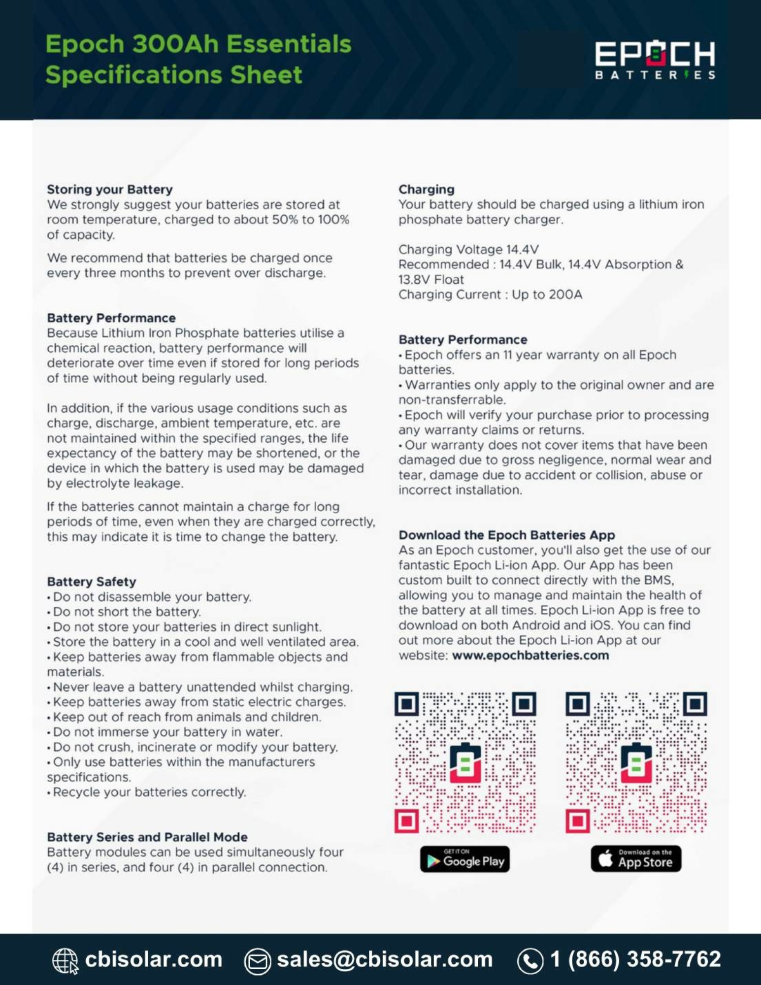 12V 300Ah Essential Series - Bluetooth & Heated LiFePO4 Battery, Epoch