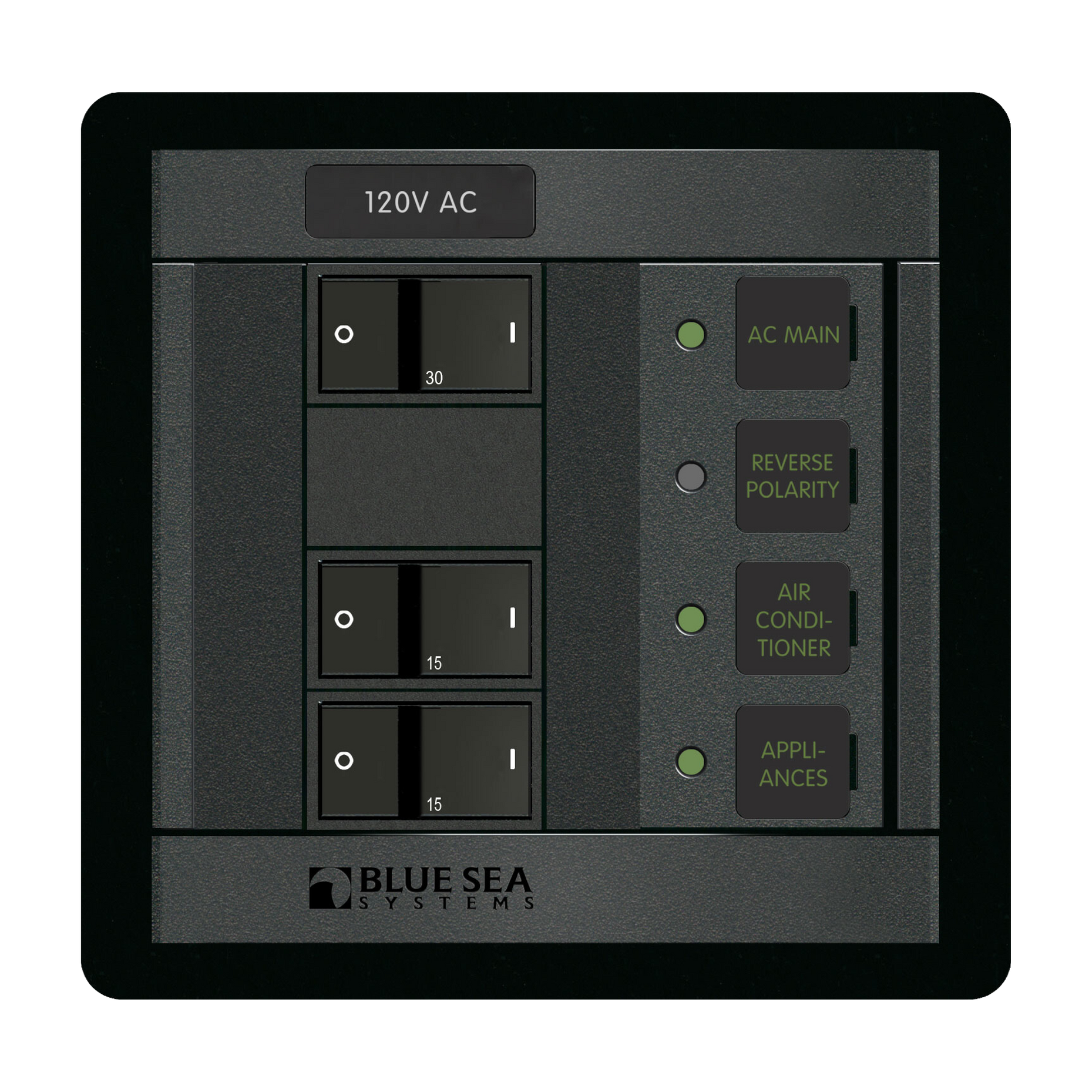 360 Circuit Panel,120 Volt AC Main + 2 Positions; Includes format label set - Blue Sea