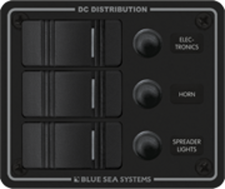 Water Resistant Circuit Breaker Panel 3 Position-Black, 12VDC - Blue Sea